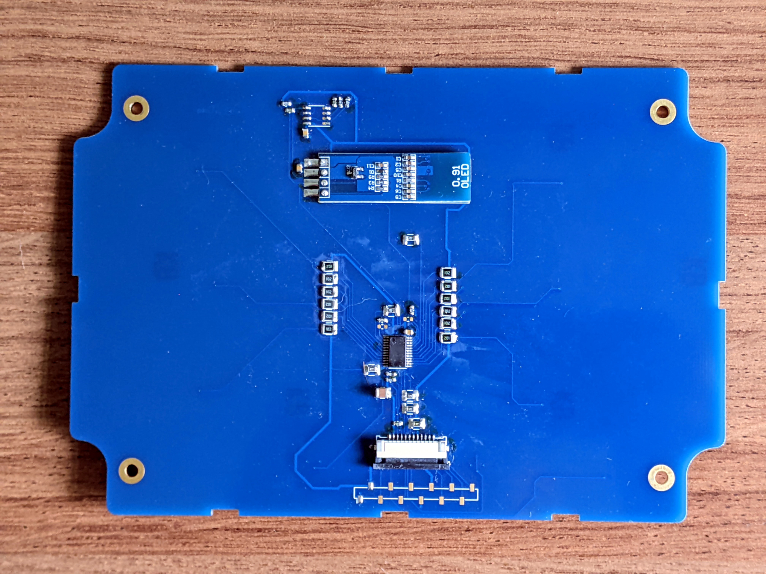 The key customization element for Aludel is the faceplate. It’s a circuit board that can deliver a beautiful custom design to match any customer request. But on the inside, each faceplate has the same interface using a flat cable connection to the base board. Current versions of the faceplate feature a a screen, an EEPROM to identify the board, and a port expander that drives buttons, LEDs, and whatever else you need for the hardware UI.